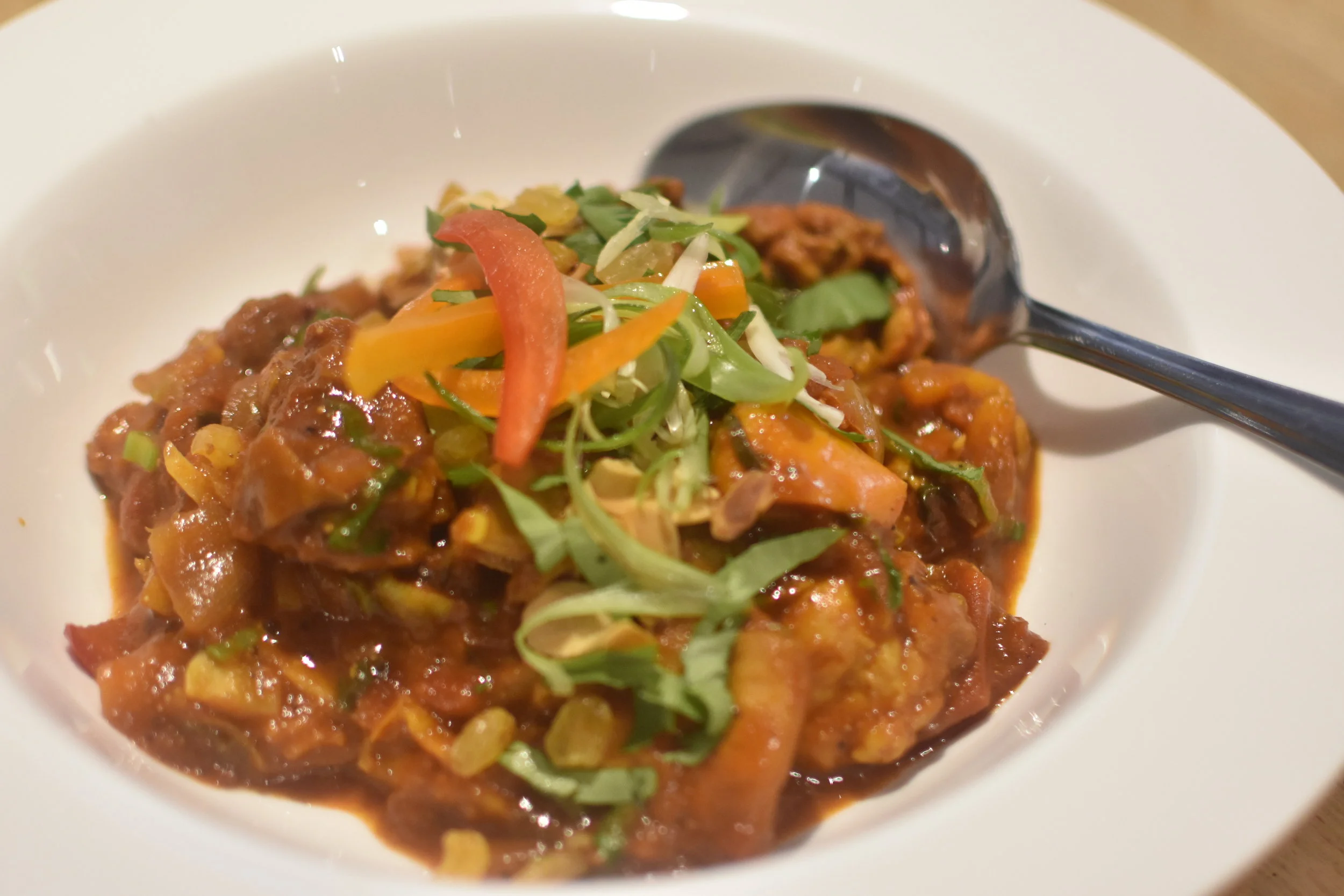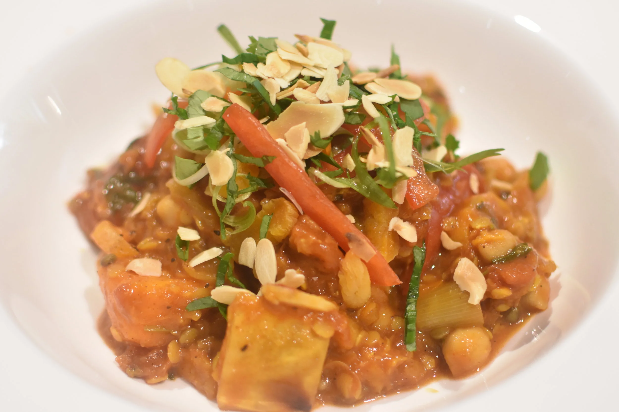 Roasted squash - tomatoes - garlic - chickpeas - coconut - coriander - cashew nuts